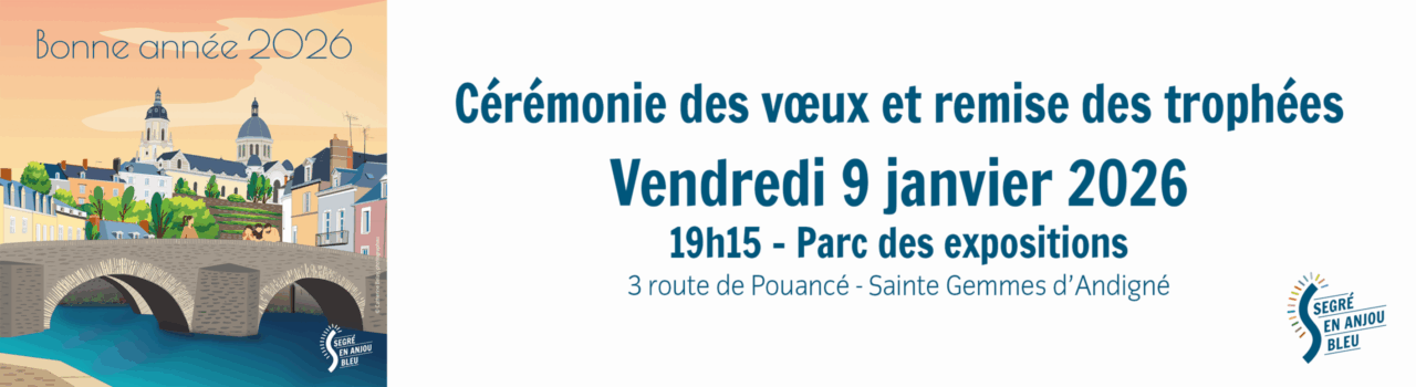 Geneviève Coquereau, maire de Segré en Anjou Bleu, Gilles Grimaud, président d’Anjou Bleu Communauté et Philippe Bolo, député organisent une cérémonie commune le vendredi 9 janvier 2026 à 19h15 au parc des expositions de Segré. Cette cérémonie est proposée comme une occasion de rencontre entre les habitants, les responsables d’associations ou de structures et les […]