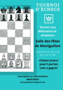 De 14h à 18h à la salle des fêtes. Tournoi organisé par l’association Echanges et loisirs.