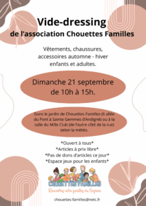 L’association Chouettes Familles vous propose une petite chasse aux trésors de Pâques. Les familles chercheront des petits objets cachés dans le jardin et recevront une surprise à la fin !Inscription obligatoire, places limitées. chouettes-familles@netc.fr