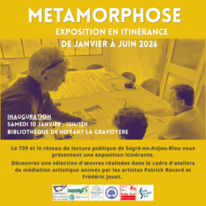 Le 739 et le réseau des bibliothèques vous présentent une sélection d’oeuvres réalisées dans le cadre d’ateliers et de médiations artistique animés par les artistes Patrick Rocard et Frédéric Jouet