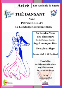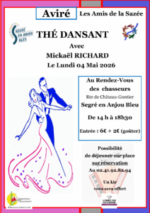 L’association « Les Amis de la Sazée » d’Aviré organise leur prochain thé dansant au Rendez-Vous des Chasseurs (RD 923)