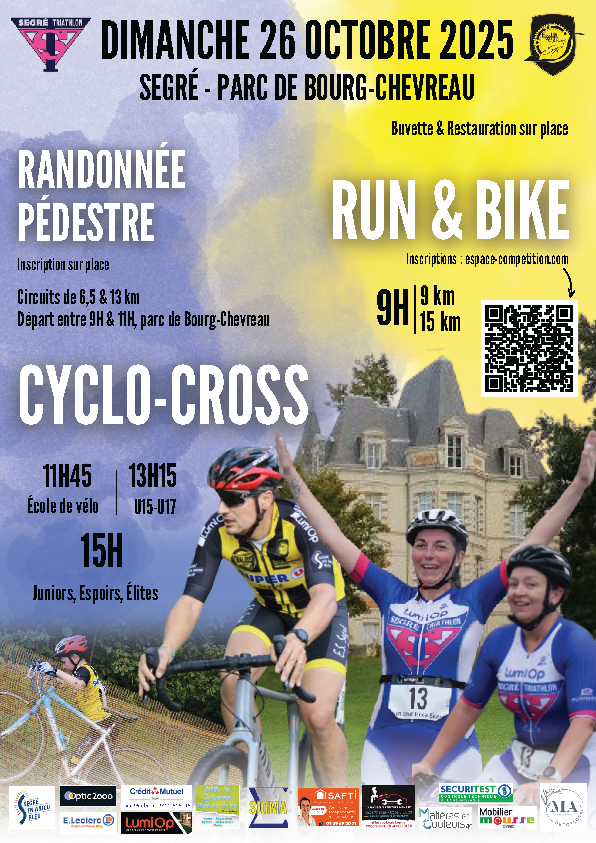 Run and bike, randonnée pédestre, cyclo-cross organisés par les clubs sportifs cyclisme et triathlon.