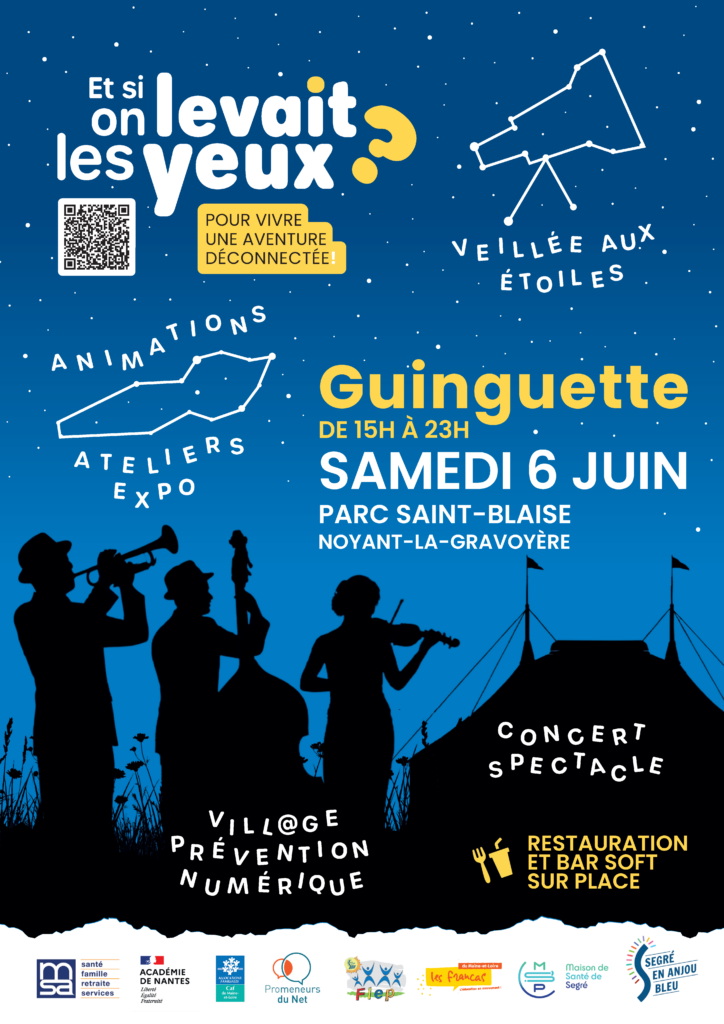 Guinguette de 15h à 23h, animations, veillées aux étoiles, village prévention numérique, concert spectacle, atelier expo