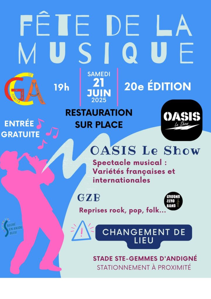 Le Comité Gemmois d’Animations ( C.G.A. ) organise la fête de la musique au stade de foot dès 19h