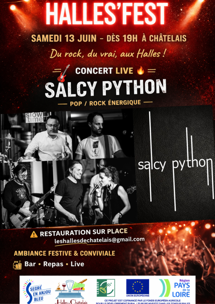 Nous sommes ravis de vous inviter à une soirée inoubliable de musique live avec le groupe Pop/Rock Salcy Python ! 🎸✨