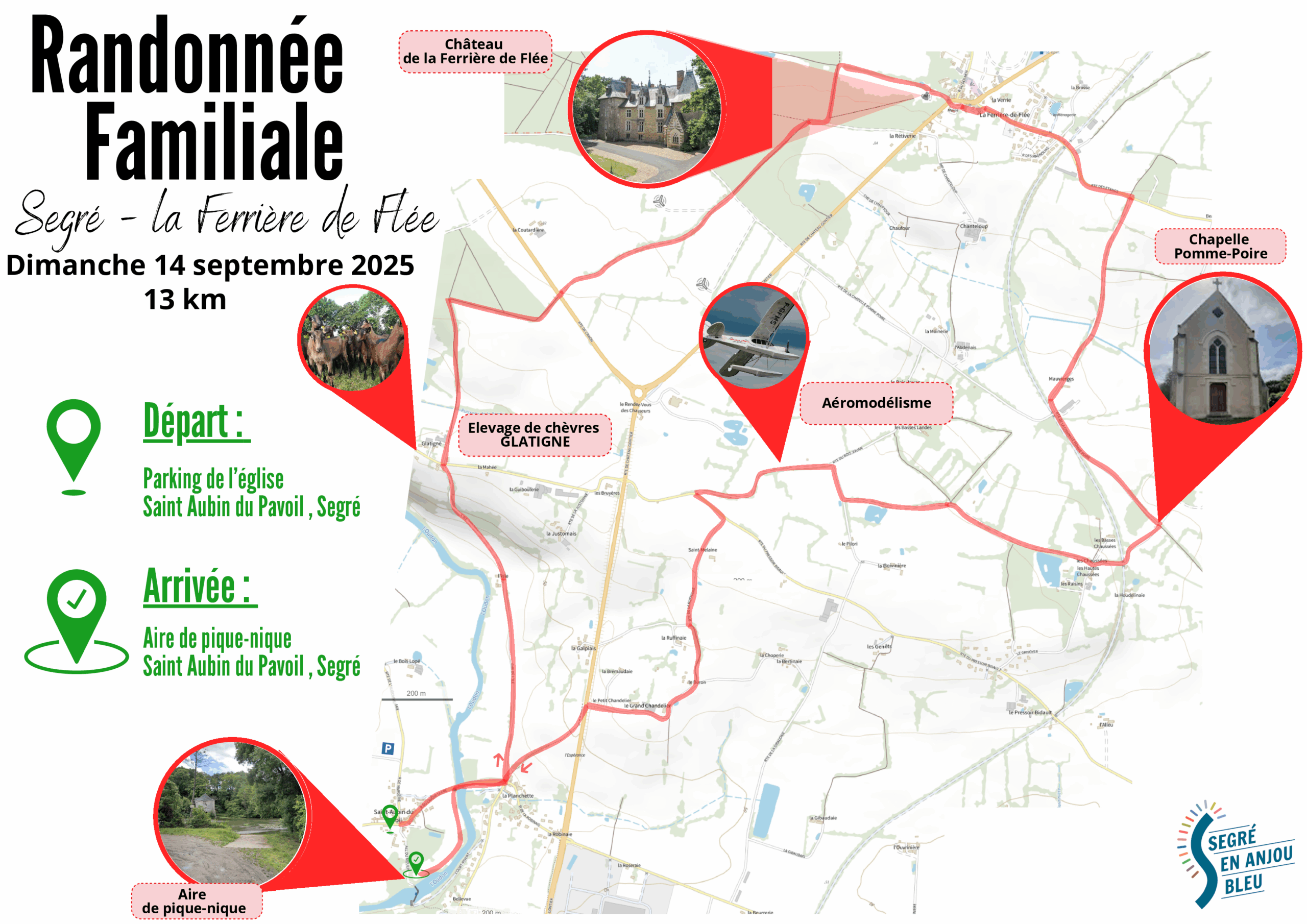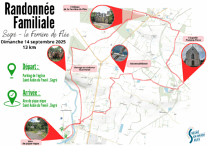 Balade le matin de Segré vers La Ferrière de Flée (circuit fléché). Pause gourmande sur le parcours, apéritif et déjeuner à partir de 12h30