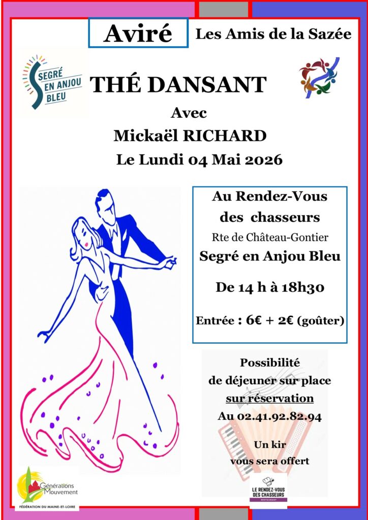 L’association « Les Amis de la Sazée » d’Aviré organise leur prochain thé dansant au Rendez-Vous des Chasseurs (RD 923)