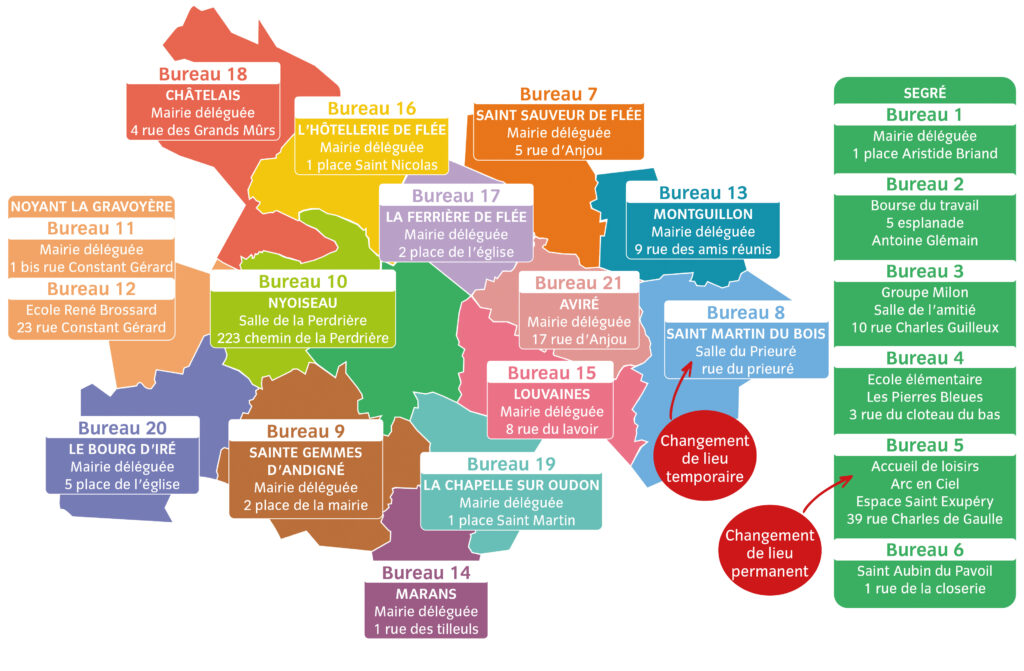 Pour participer activement à la tenue d’un bureau de vote : pour remplir les fonctions de président ou assesseur d’un des 21 bureaux de vote lors des prochains scrutins, appeler le service Élections au 02 41 92 52 69 ou envoyer votre message électronique à la Mairie par courriel