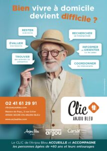 Le Centre Local d’Information et de Coordination gérontologique (CLIC) de l’Anjou Bleu a pour mission d’accueillir, d’informer, d’orienter et d’accompagner les personnes âgées de plus de 60 ans, leurs entourages et les professionnels concernés dans le Bien Vieillir à domicile. Il évalue les besoins et apporte une réponse adaptée, en proposant des plans d’aide individualisés. Il suit l’évolution des situations et coordonne les différents acteurs sociaux, médico-sociaux et sanitaires intervenant au domicile.